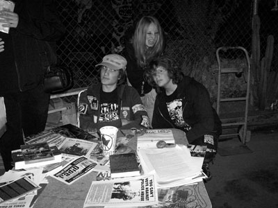 ![]() The Artifix kids and friend man their anarchist "distro" table at La Mano Press |