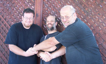 ![]() Greg with sound engineer "Johnny Penguin" and "Johnny Stingray" from the Controllers and Kaos |