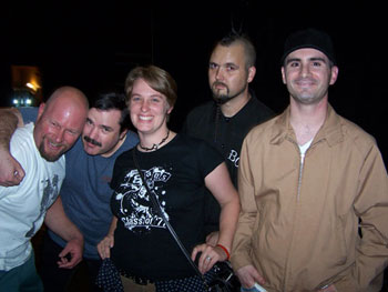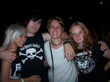 ![]() Kim with Pat Fear (White Flag) and friend on the left, guy from O.C. band Six and friend Chris on the right. |